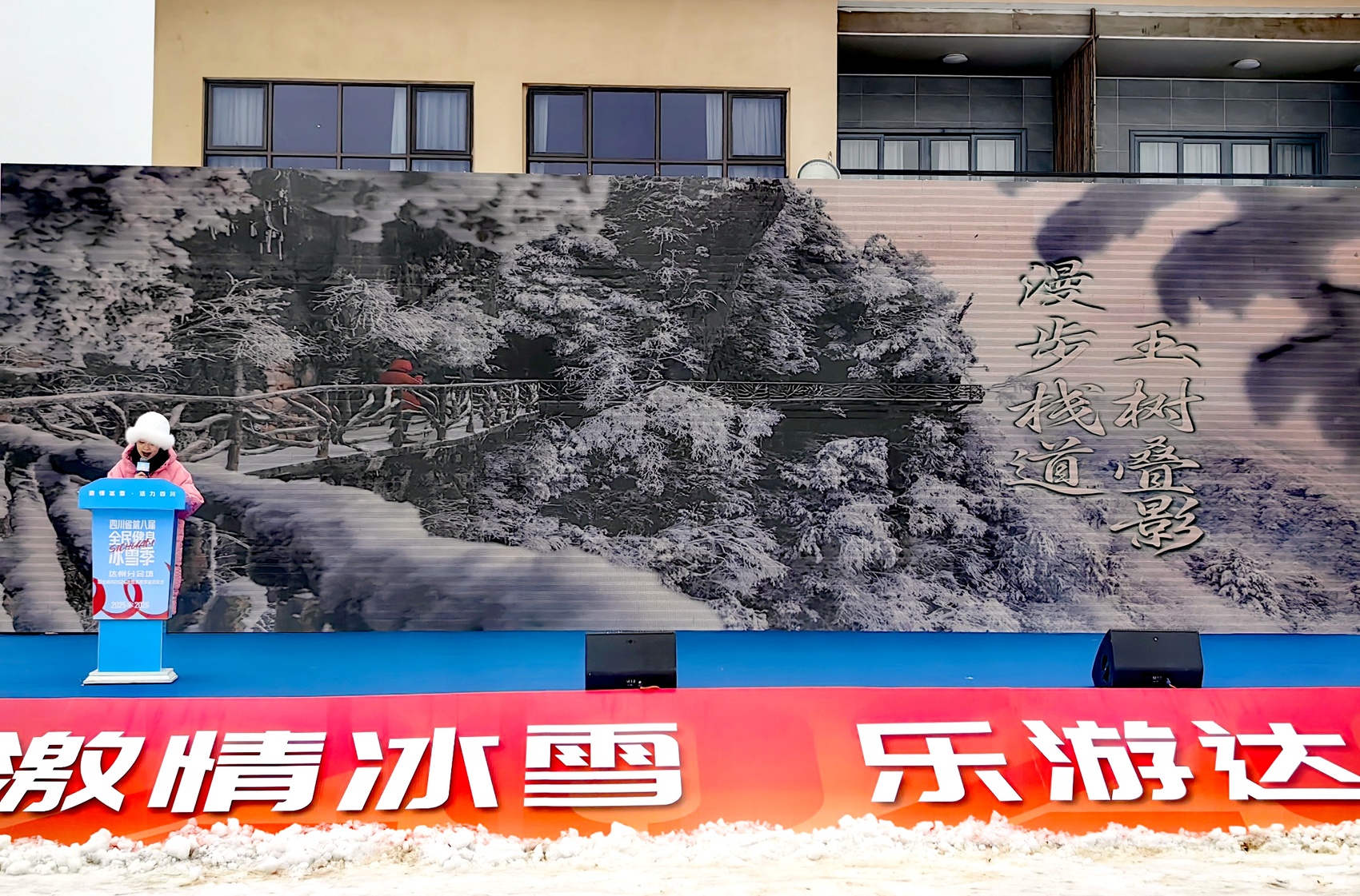 启动仪式现场,开场舞《冬日魔法》营造出冰雪世界的奇幻氛围,具有地方特色的歌舞《勒是达州》展现了巴渠文化的魅力,《快乐出发》《一起来滚烫》等节目则洋溢着蓬勃的运动气息,引来观众阵阵掌声。