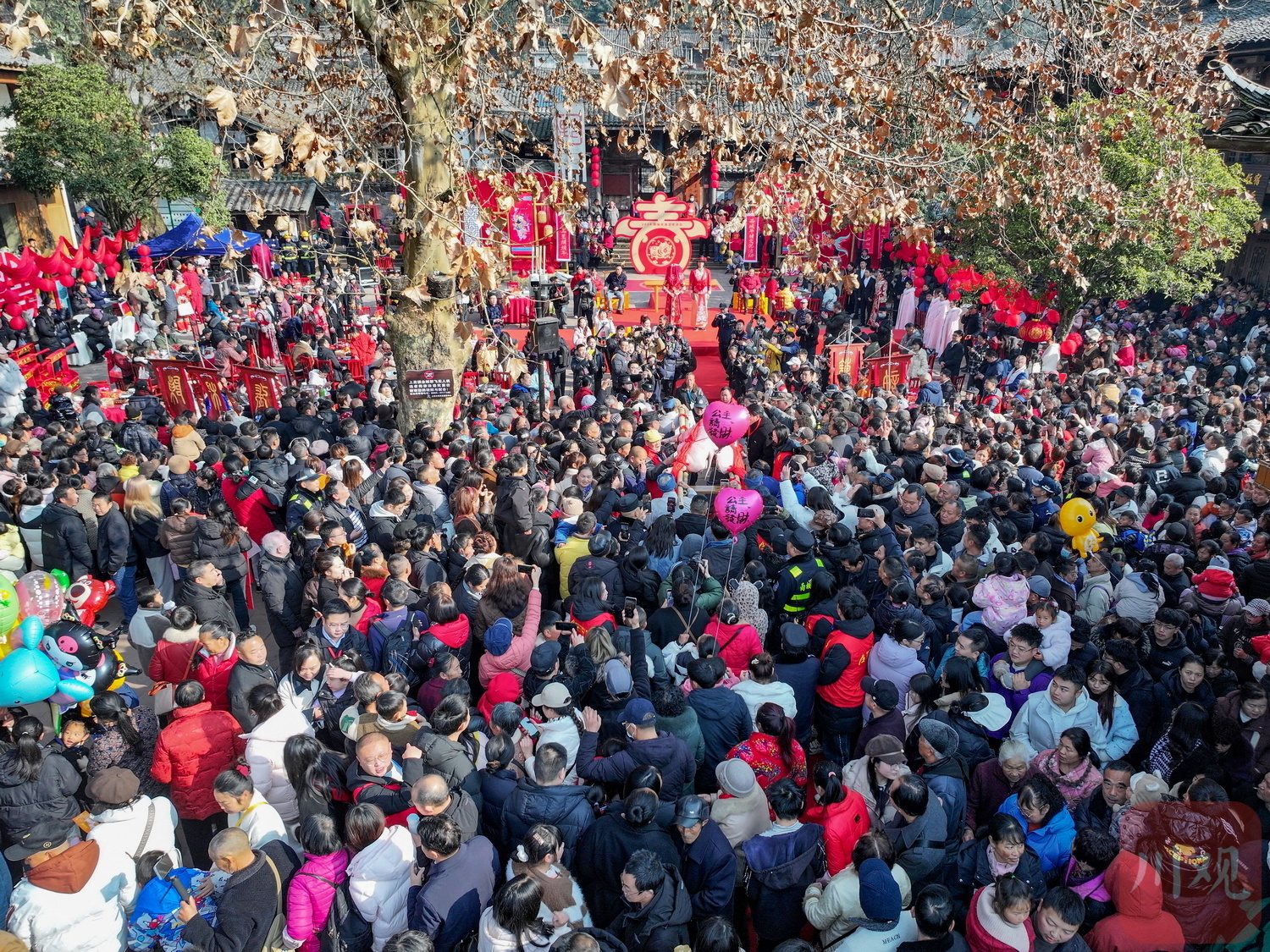 “吉时到——”!1月17日11时,上里古镇被一片喜庆的红浪淹没,锅里烧着热气蒸腾的年猪,一场别开生面的“雨城烟火坝坝年”年猪文化旅游活动,在浓浓的古韵与乡情中拉开帷幕,还有6对新人迎来一场热闹非凡的中式集体婚礼。