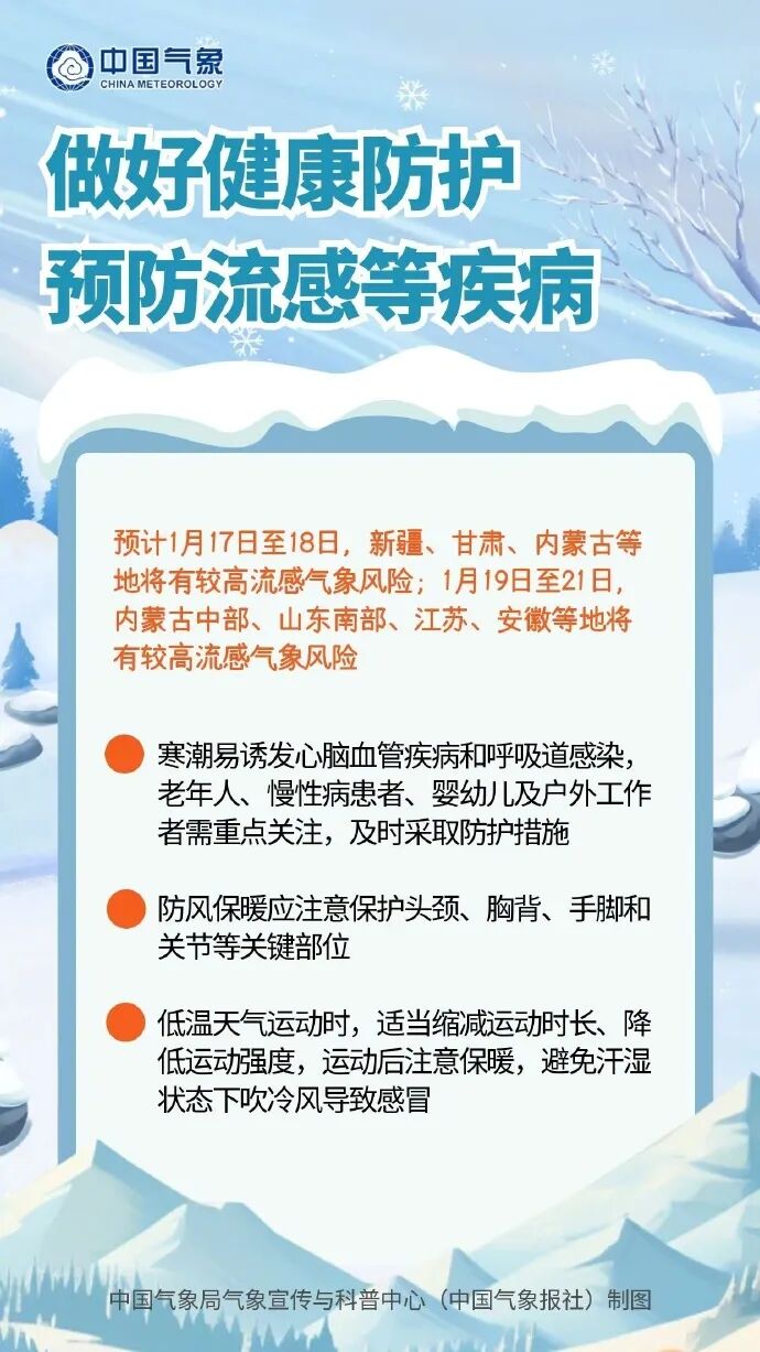 中东部地区雨雪影响范围和强度均为今冬之最,山东、河南、湖北、安徽、湖南、江西等地将经历降雨、雨夹雪、雨雪混合、降雪的降水相态转换,部分地区有大雪或暴雪,易造成道路湿滑、结冰、积雪,对出行交通影响明显。