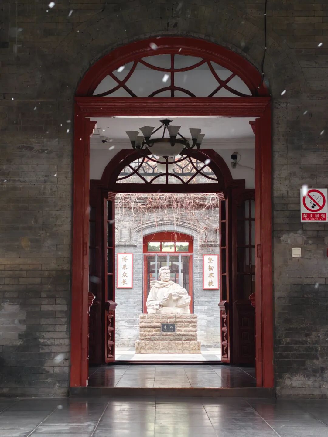 鲁迅中学门前飘雪。拍摄:吴鲁萍