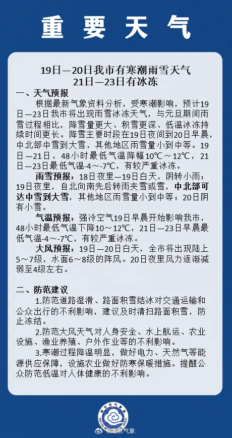 1月20日最低气温: -2℃到-3℃,有冰冻