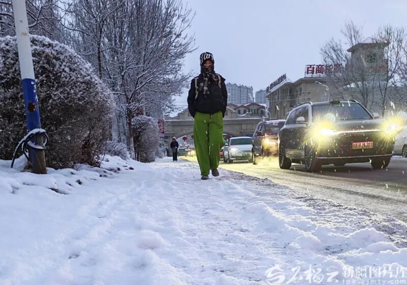 1月15日,市民在乌鲁木齐市后泉路冒雪出行。石榴云/新疆日报记者 约提克尔·尼加提摄