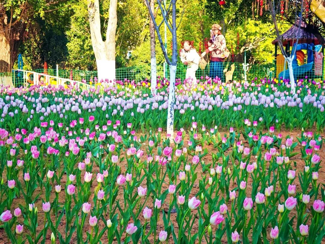 近日,福州市儿童公园清风园内,130平方米的锦绣花毯及7600余株郁金香正盛放,吸引众多市民前往打卡。