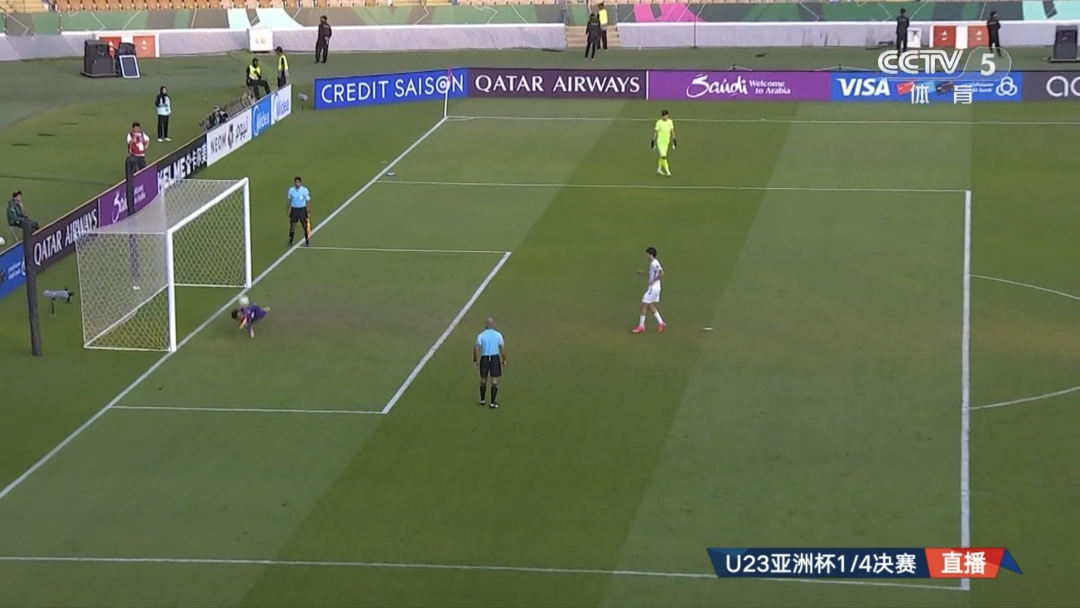 点球大战中,中国队门将李昊扑出乌兹别克斯坦队关键点球。央视截图