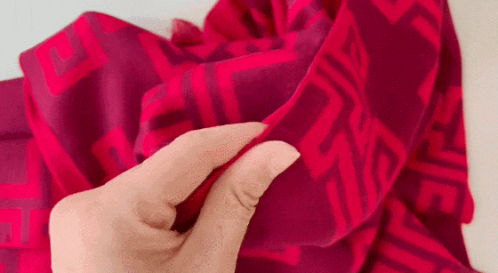 围巾上的印花简约大气,且精致细腻,非常耐看。