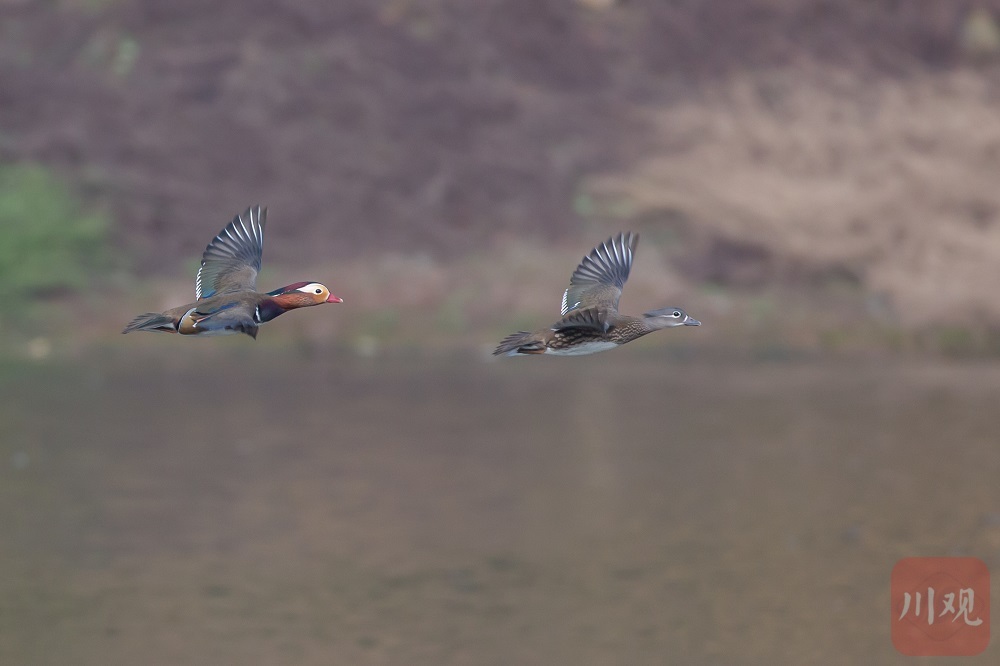 鸳鸯·国家二级保护动物:雄鸟羽色艳丽,具帆状直立翼帆;雌鸟灰褐。栖于山地溪流、湖泊,常成对活动,树洞营巢。