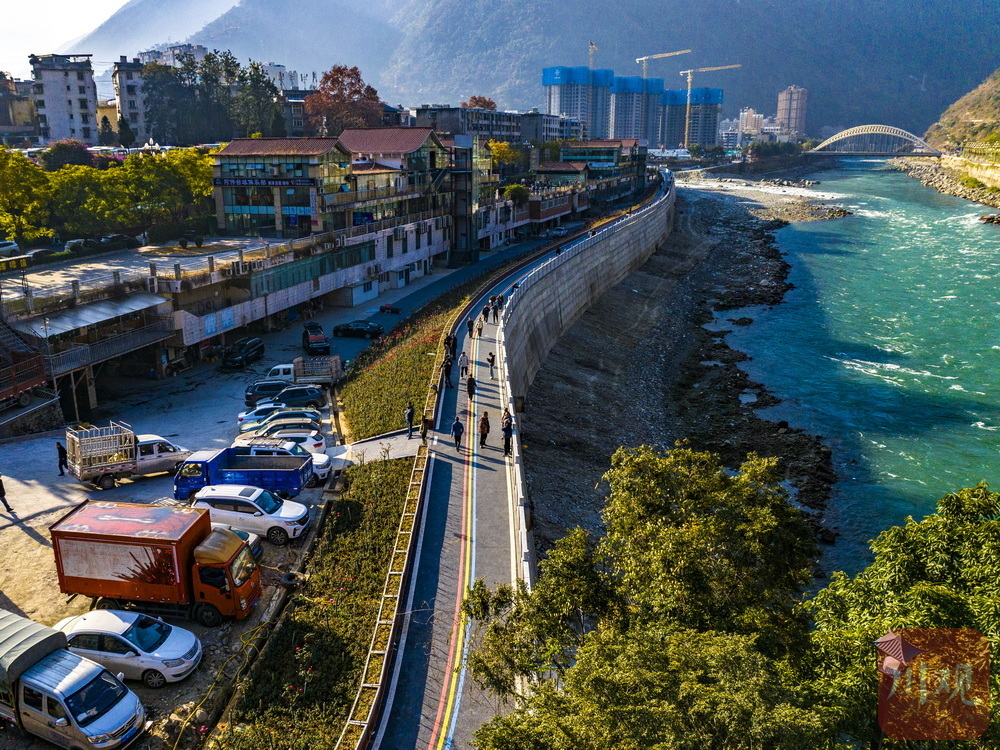 昔日洪水泛滥的‘危险堤坝’,如今变身成花团锦簇的‘滨江公园’。石棉百姓再也不用提心吊胆,而是能迎着大渡河的晨光散步健身了。