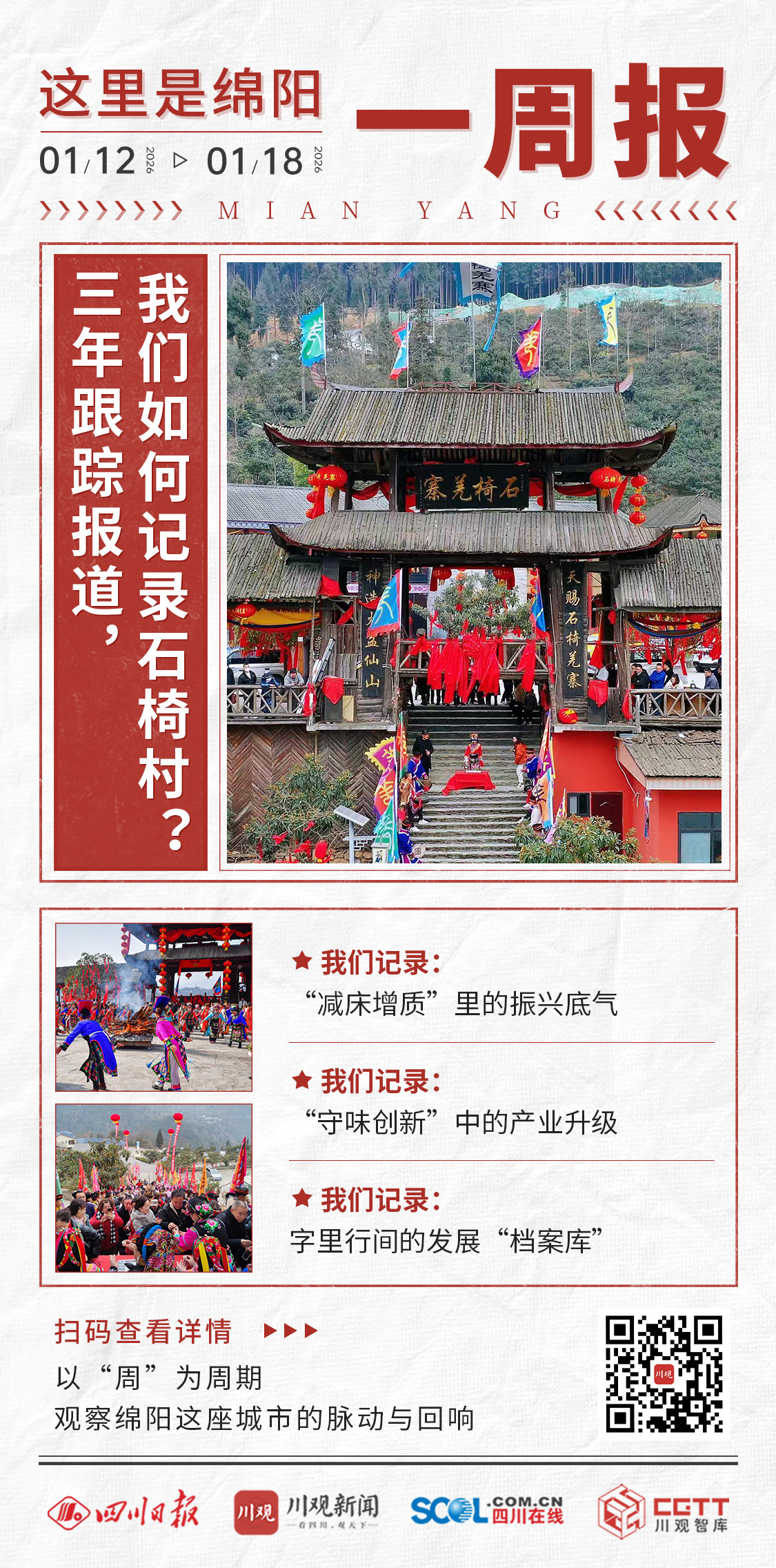 2026年1月12日—18日,进入2026年的第三周。在本周的1月18日,《四川日报》头版头条再次关注绵阳,聚焦北川羌族自治县曲山镇石椅村。