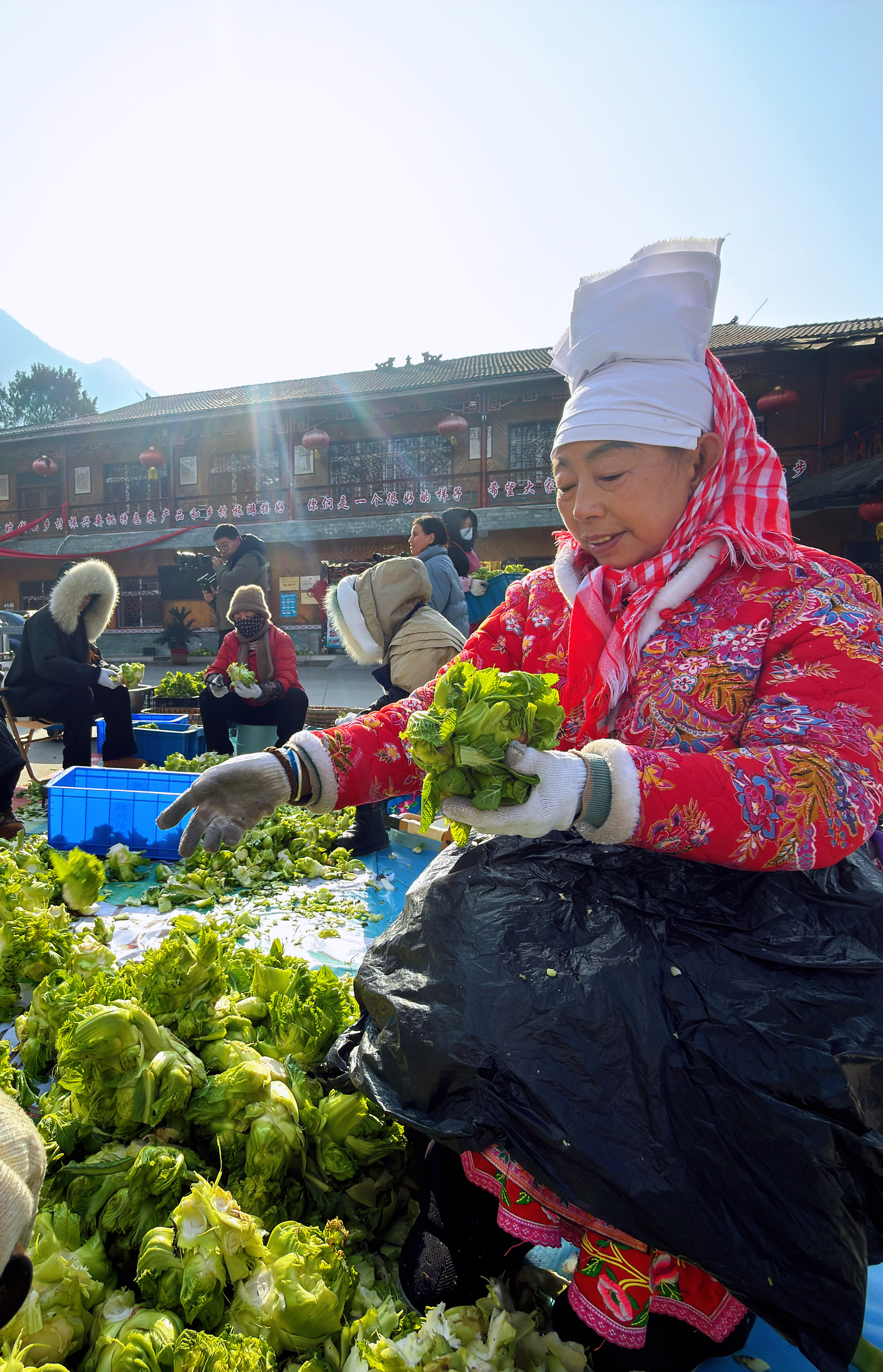 村民准备腌制过年用的泡菜(郭超英摄)