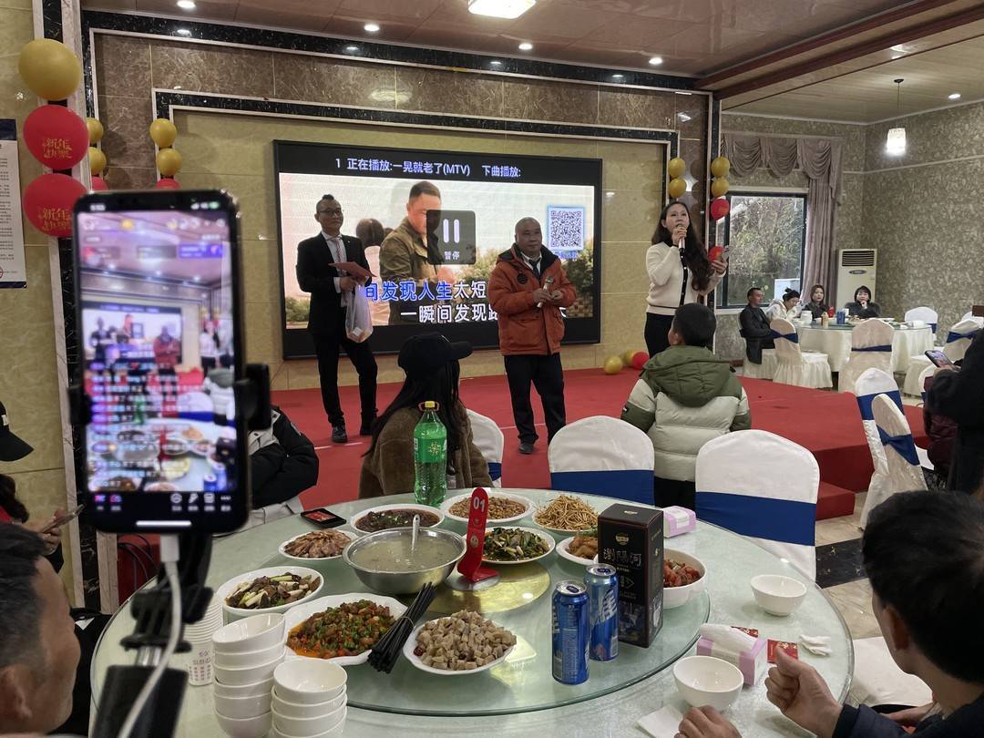 从江西赶回来的粉丝“腾飞大哥”还带回来一批阿胶,用于现场抽奖。“活动搞得挺好的,盐帮菜很好吃,这里的乡村也很美。我希望以后可以来这里投资种西瓜,再买几百斤血橙助农增收,把自贡的血橙带到江西推广。”