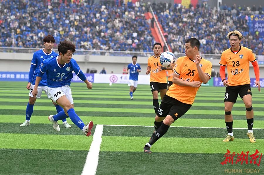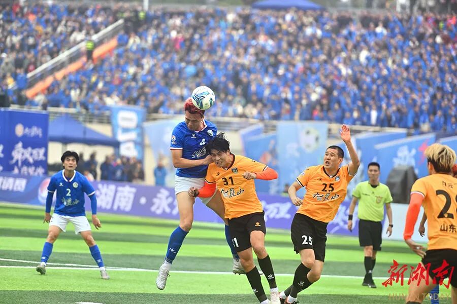 上半场第3分钟,泰安队28号白云飞打进第一粒进球;第7分钟,永州队7号林昊用一脚世界波将比分扳平。