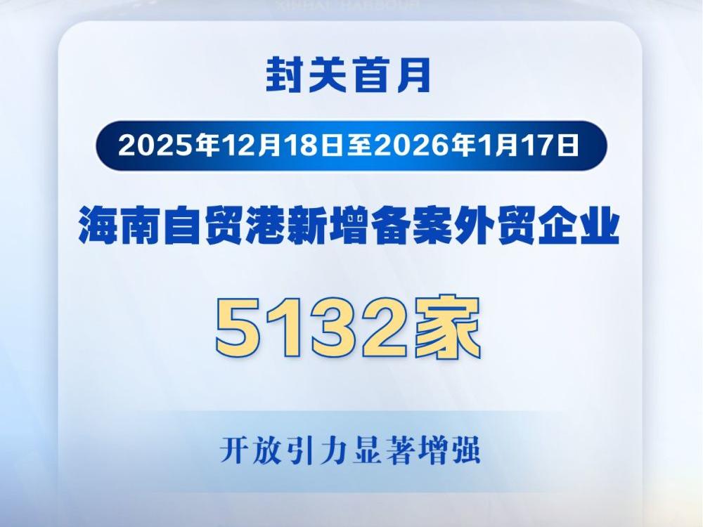 受海南自贸港封关利好和开放磁吸效应影响,更多外贸企业选择在海南安家落户。一个月来,海南新增备案外贸企业5132家。
