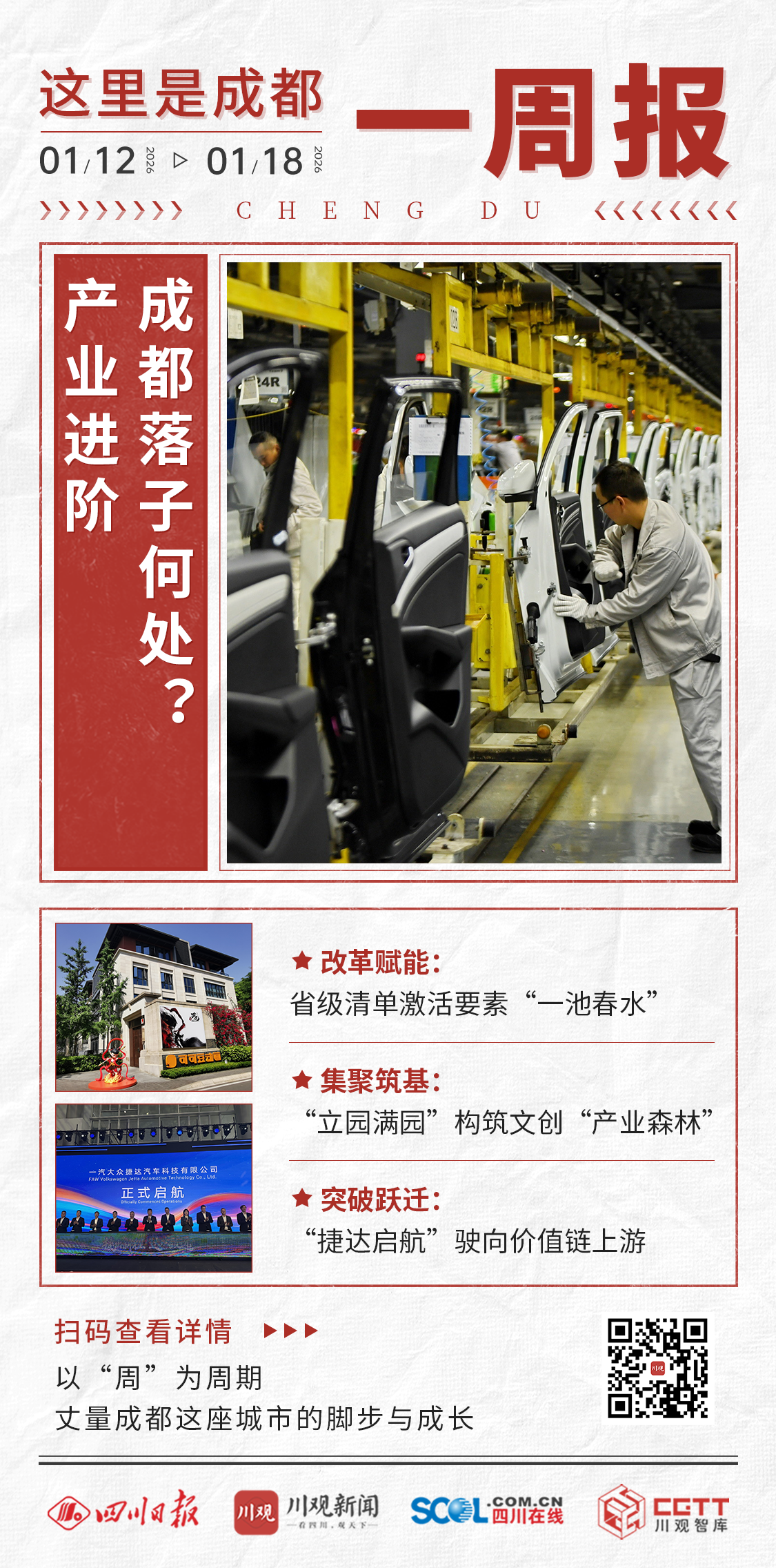 上周是2026年第三周,时间为1月12日至1月18日。新年伊始,成都产业发展动作呈现出“改革、集聚、突破”三条清晰的脉络。