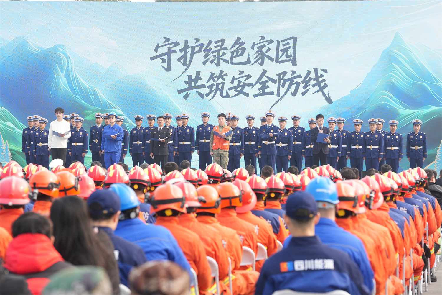 “今天,我们以责任为声,以使命为誓,邀请社会各界的朋友们,共同发出守护绿色的深情倡议……”村(社区)干部、企业职工、大中小学学生、志愿者、护林员、扑火队员等36名代表们共同宣读《守护绿色家园 共筑安全防线——森林草原防灭火倡议书》。铿锵有力的誓言穿越人群,凝聚起全社会守护绿色家园的共识。