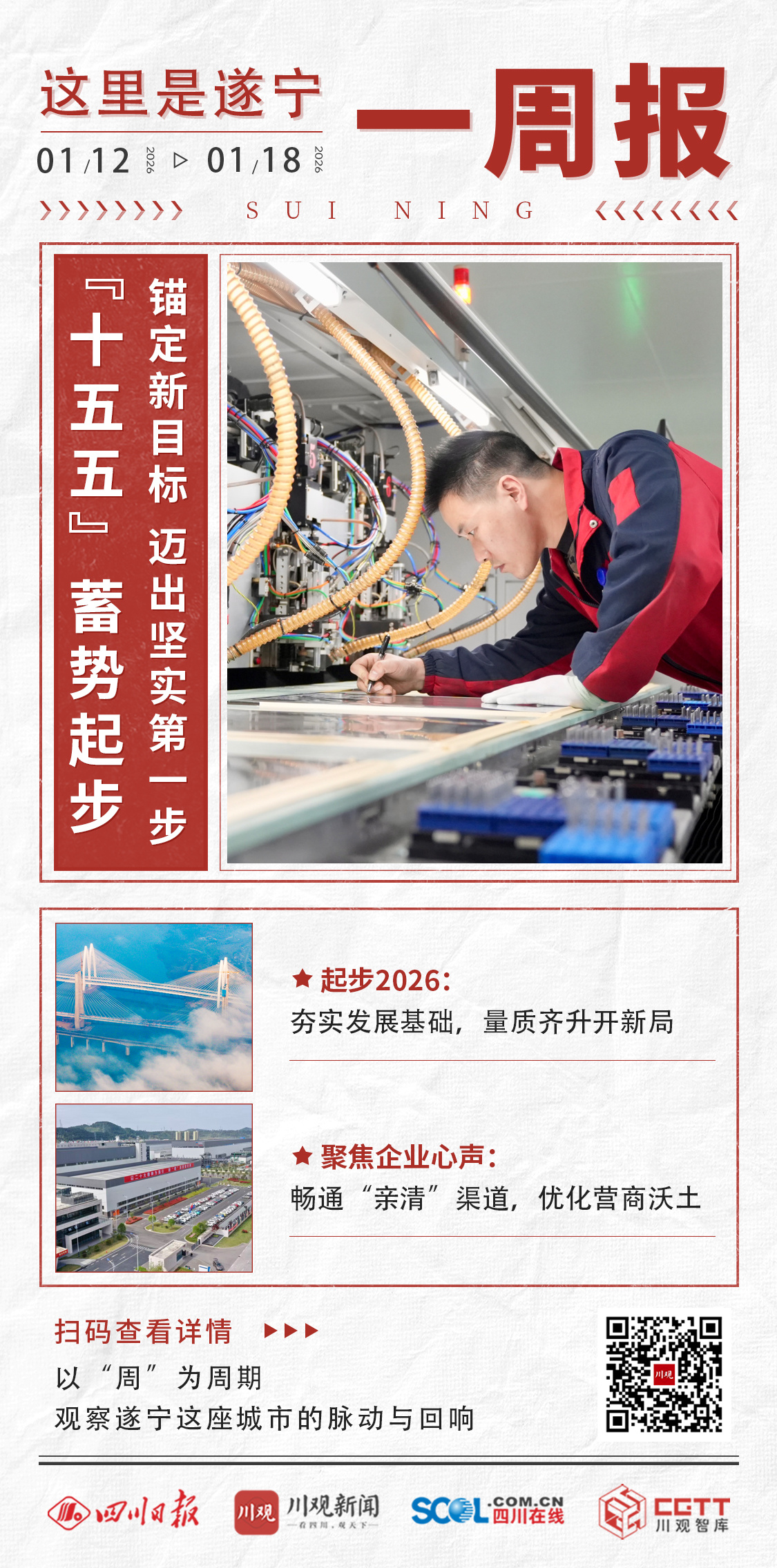 刚刚过去的一周,“起步”是遂宁的关键词。1月14日,《中共遂宁市委关于制定遂宁市国民经济和社会发展第十五个五年规划的建议》(以下简称《建议》)正式对外公布,遂宁未来五年的发展有了清晰的方向。围绕《建议》提出的重点,遂宁市委主要领导深入一线调研,与民企展开座谈,倾听大家的声音。
