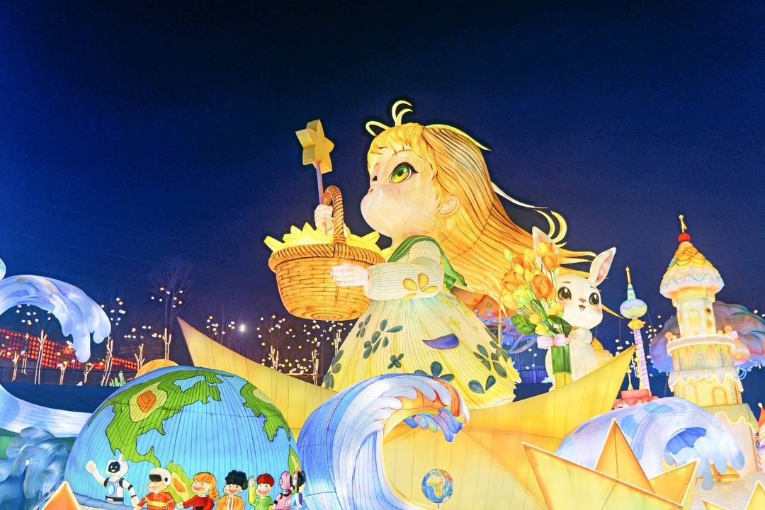 今年,灯会更注重以灯为媒、以光叙事,让彩灯“讲好中国故事”。取材《庄子》的“神奇华夏”灯组长达210米,以鲲鹏之姿展现强国气象与民族豪情;为迎接农历马年打造的“木兰传奇”灯组长达180米,将木兰英姿与骏马奔腾巧妙融合,传递不让须眉的家国情怀;高35米的“华结映门”以中国结为创意,首次实现正背面视觉统一,宛如连接古今的时空之门;搭载AI交互系统的“年年招财”年兽灯组,可实现瑞兽与游客的趣味对话,让传说走进现实。