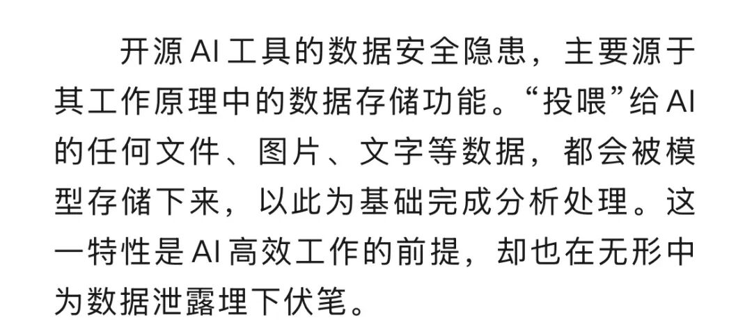 轻点鼠标就能生成方案、上传文件即可快速处理,便捷高效的开源AI工具,早已成为不少人工作和生活中的“得力助手”。可你是否意识到,在你将内部资料、隐私信息“投喂”给AI的那一刻,一场隐蔽的泄密风险可能已经悄然降临。