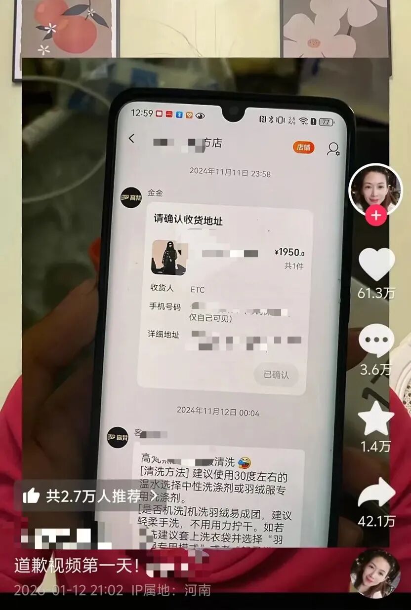 牛某某此前在视频中晒出丈夫高某为同事购买衣服的信息