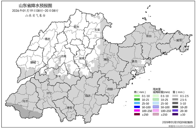 预计19日白天到夜间,寒潮、雨雪冰冻和大风降温天气仍将持续,鲁南地区有小雪局部中雪,鲁中地区局部有小雪转晴,半岛地区有小雪,将出现对交通有较大影响的积雪和道路结冰。