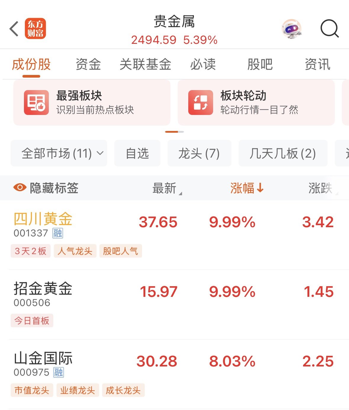 四川板块方面,四川黄金今天走出“10cm”涨停,涨幅位居贵金属板块首位,从月线来看,该股本月已经累计上涨超过35%。