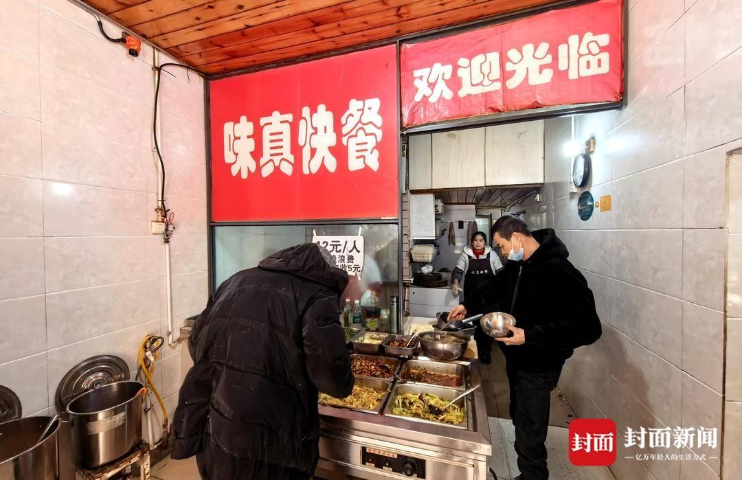 出租车司机经常过了“饭点”才来吃饭,但厨房里随时都有热菜端出来,有些菜吃完了,有些菜却刚出锅;快递小哥匆匆进店,习惯用大碗,既装米饭也装热菜,就着番茄鸡蛋汤,10分钟就能解决一餐。