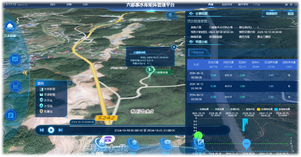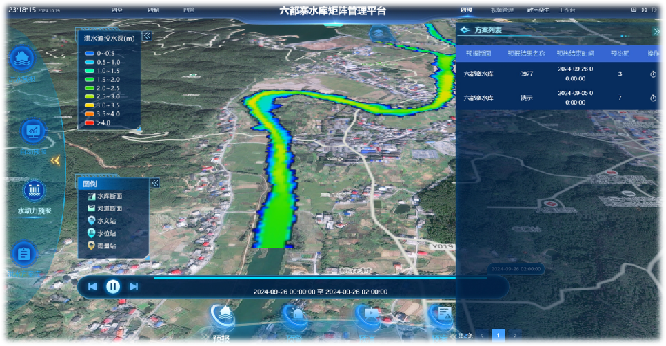 在矩阵平台上,模拟极端暴雨条件下流域洪水演进、防洪调度过程,实现流域洪水预报、灾害风险智能分析预警、防洪调度推演、防御预案迭代优化等“四预”功能。