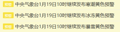 中央气象台今日10点连发三预警:
