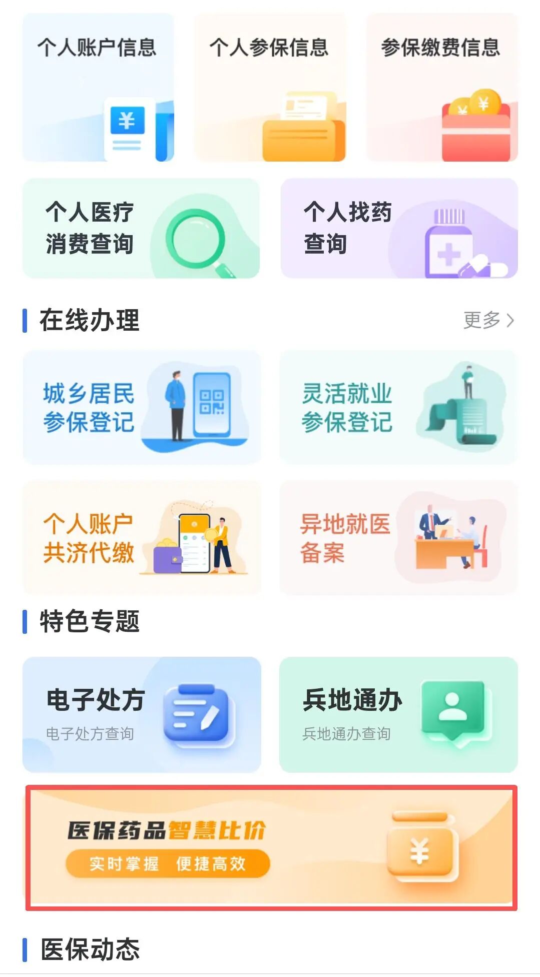 第一步:以“新疆医保便民服务平台”微信小程序为例,打开“新疆医保便民服务平台”小程序,点击进入下方“医保药品智慧比价”。