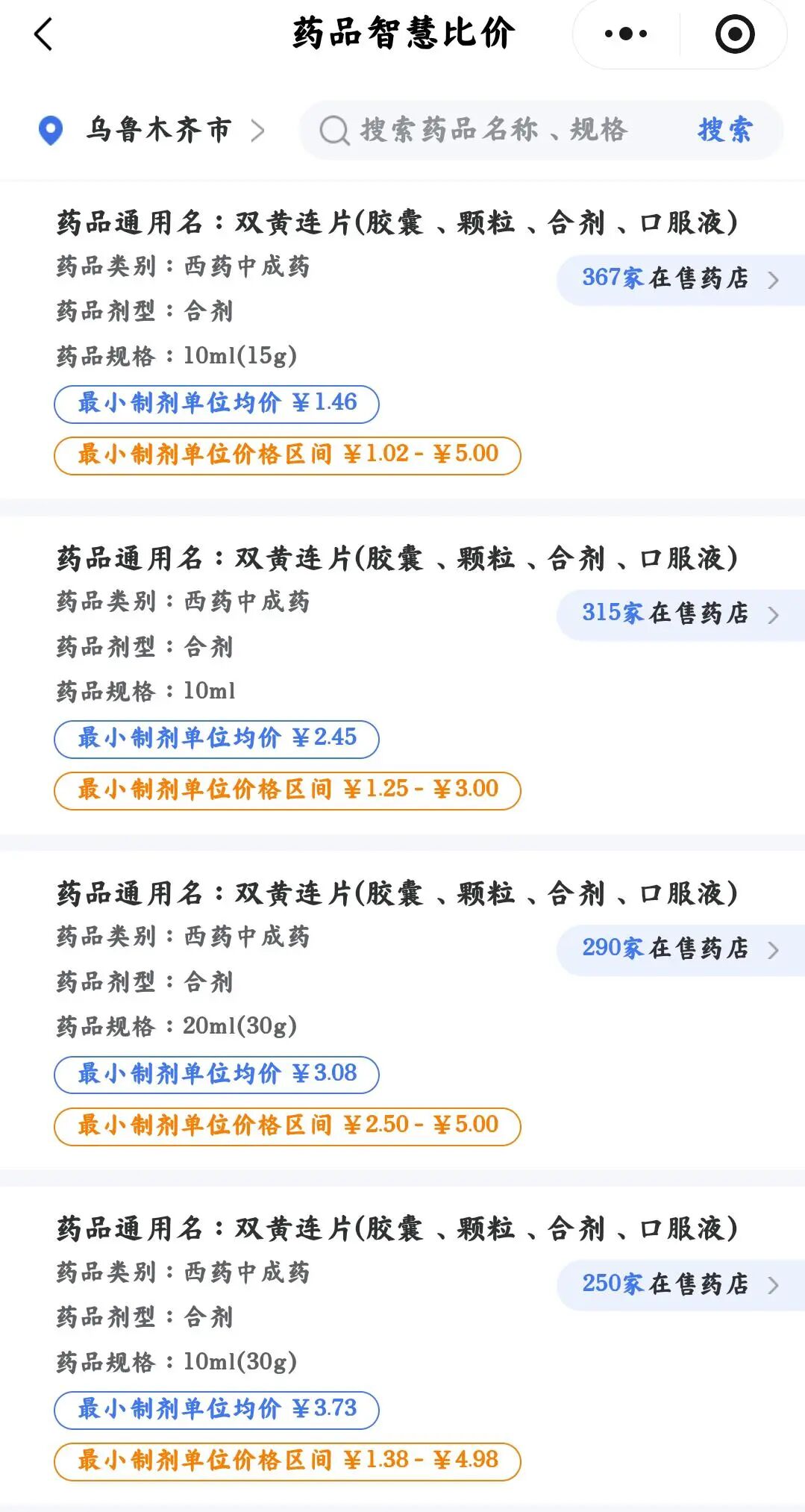 第三步:以搜索“双黄连口服液”为例,可以看到下方展示了在售的相关商品信息。