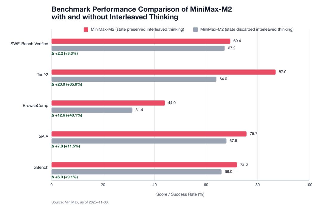 MiniMax 推广的 Interleaved Thinking(交错思维链)技术。图源:MiniMax