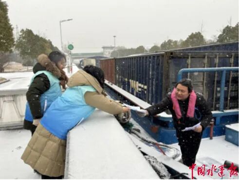 解台船闸“北斗星”志愿者主动走上船头,开展冬季航行安全宣传,叮嘱船员落实防滑防冻措施。刘山船闸全体职工顶风冒雪坚守岗位,领导带班、党员冲锋,以“时时放心不下”的责任感投入保通保畅工作。各单位协同发力,有效保障了电煤、粮食等重要民生物资运输通道的安全高效运行。