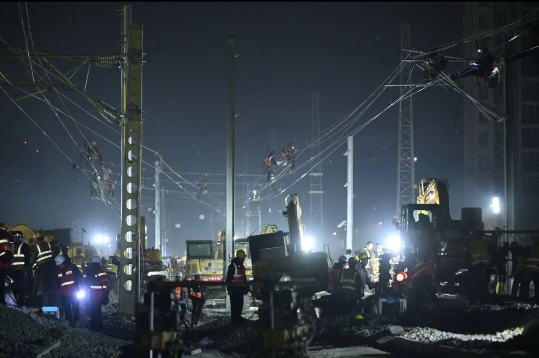 成都建设指挥部副指挥长邓蜀昌介绍,施工涉及成都站东咽喉、八里站西咽喉、八里站东咽喉及客机整备所等4个作业面,共有20余家单位参与,共投入近千名作业人员、百余台机械设备,完成了成渝铁路、达成铁路总计643米的线路拨接与整修,启用新线路3.2公里、新道岔16组,并同步实施了八里站信号系统倒替等改造工作。施工时间自1月15日22时30分开始,至16日4时结束,历时5小时30分钟。
