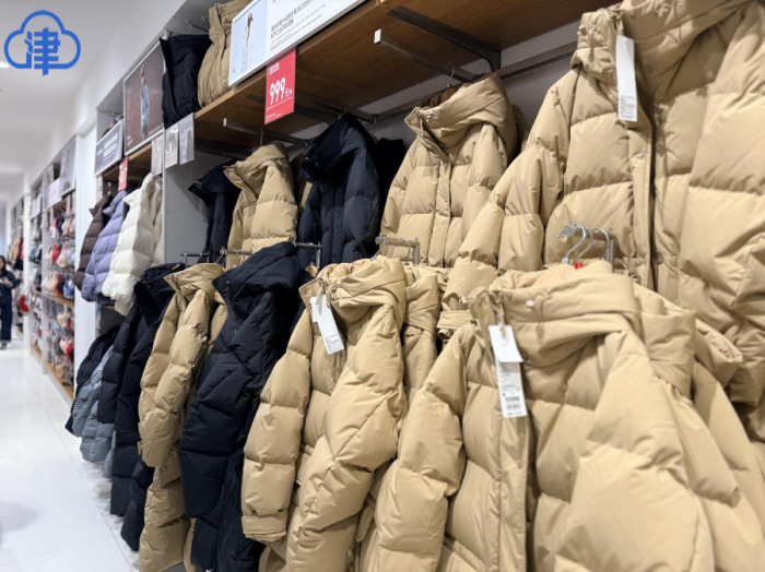 津云记者线下走访和平大悦城、国际商场、乐宾百货等多家商场的品牌门店,主流价格普遍在千元档,各品牌因款式设计、用料、品牌价值等呈现不同价格区间。以优衣库为例,一款绒子含量90%,充绒量285克的长款羽绒服,原价1299元,优惠价为999元。