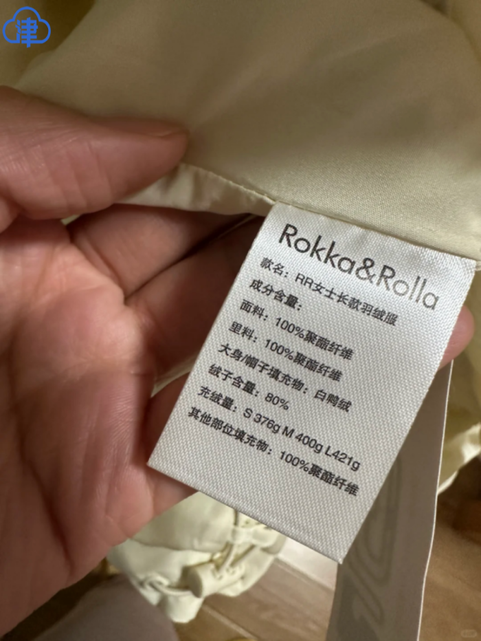 消费者顾女士也对比了自己于两年前购买的某知名品牌长款羽绒服,产品信息显示:填充物为鸭绒,绒子含量90%,充绒量从173克到231克不等。“我这个170码是194克绒,但是买的时候要2000多,这样算下来一克绒要10来块钱。当然大品牌可能在面料、工艺、设计等方面有优势,但算下来也是挺贵了。”