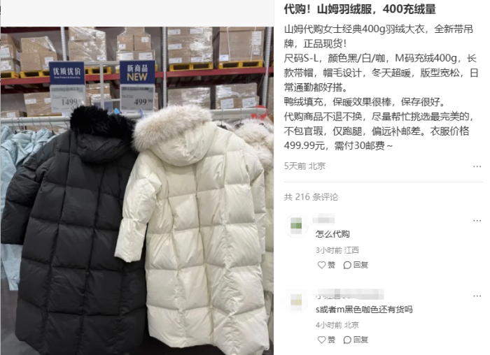 张女士告诉津云记者“种草”山姆羽绒服的主要原因——价格低,但充绒量更高。“网上买过的人说‘暖得像行走的羽绒被’,我就动心了。”