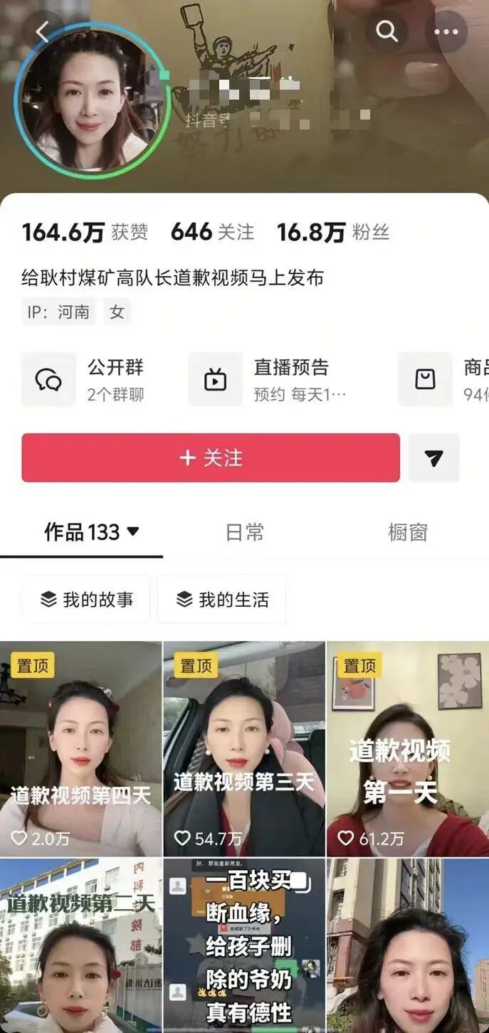 据相关媒体报道,近日,河南女子牛娜在抖音连续多日发布向丈夫的公开道歉视频,引发网友广泛关注。(此前报道女子被判向“出轨丈夫”公开道歉15天,道歉内容亮了!单条视频点赞超50万,丈夫及单位暂无回应)