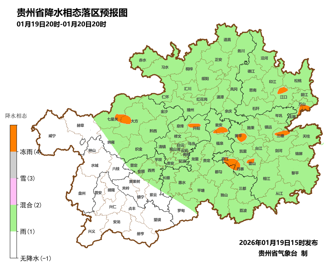 贵州省气象台1月19日16时发布低温凝冻蓝色预警: