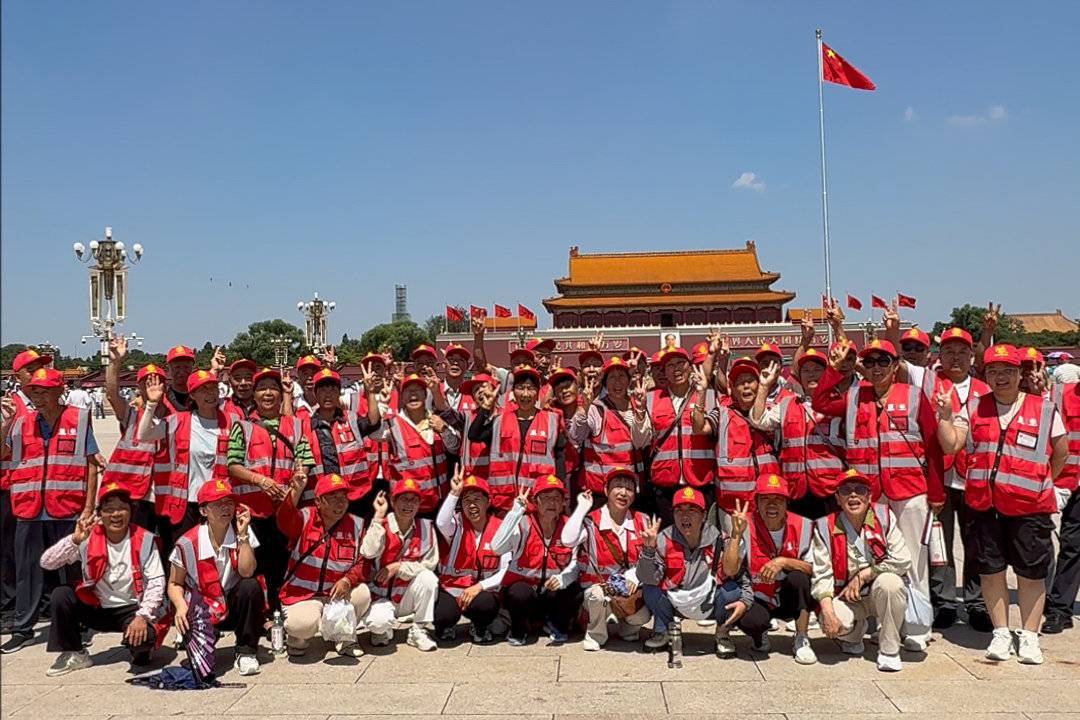 2025年8月,三家村的老人们在天安门广场上的合照。受访者供图