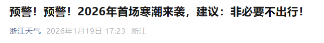 据浙江天气,随着寒潮主体在明天(20日)全面入侵,天气舞台将迎来本次过程的“最强演出”。目前浙江共有79条气象预警正在发布中!浙江省气象台继续发布寒潮警报。