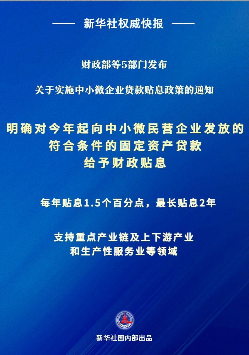 1月20日,财政部等5部门对外发布通知,明确实施中小微企业贷款贴息政策。政策支持范围为2026年1月1日起经办银行发放的、符合条件的中小微民营企业固定资产贷款和中小微企业参与项目使用的新型政策性金融工具资金,支持领域包括重点产业链及上下游产业、生产性服务业等。