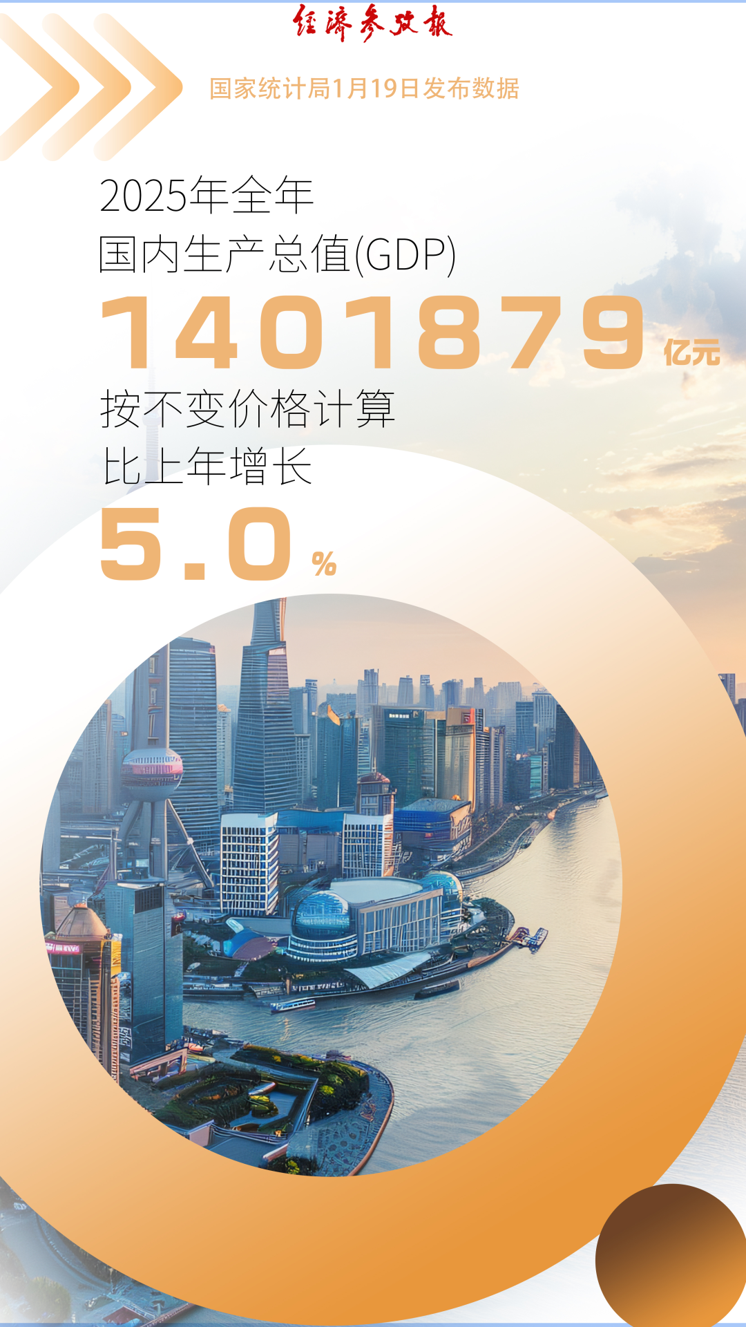 国家统计局1月19日发布数据显示,初步核算,全年国内生产总值1401879亿元,按不变价格计算,比上年增长5.0%。