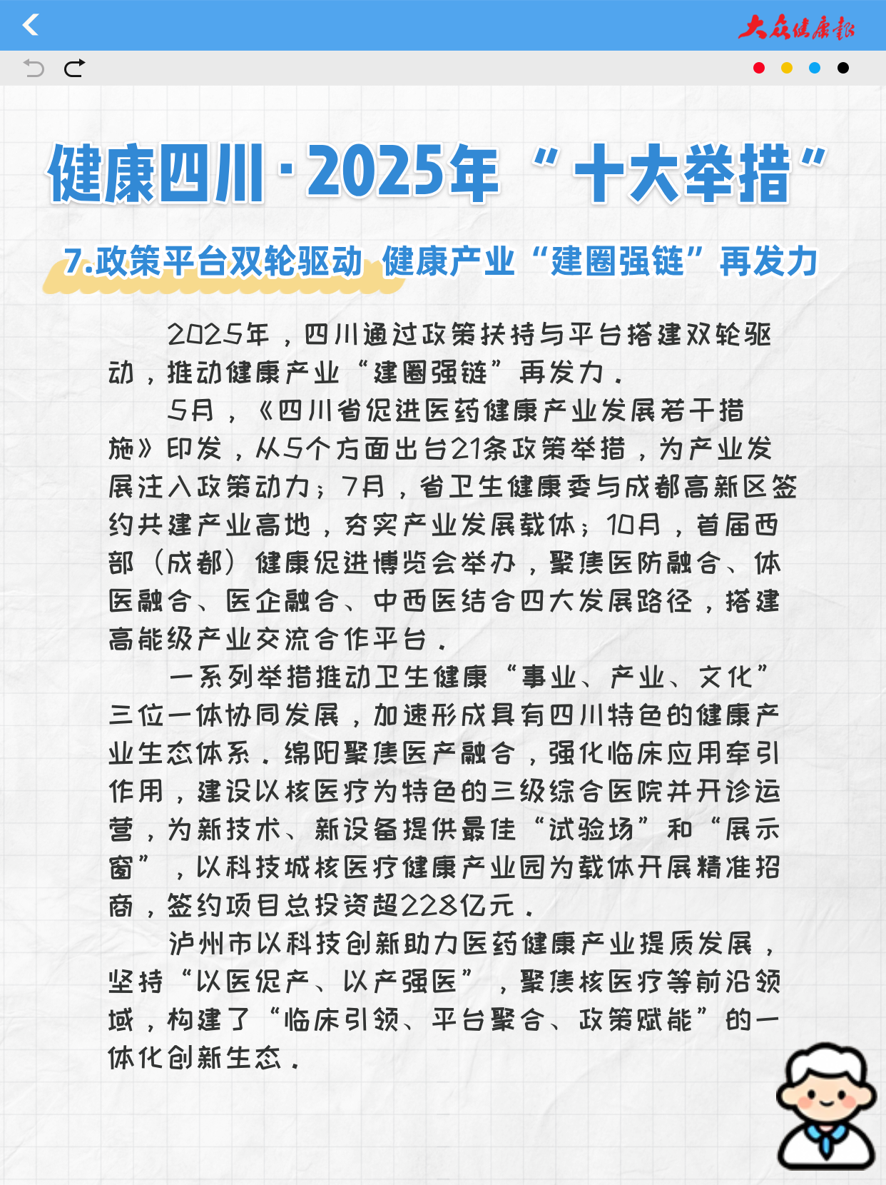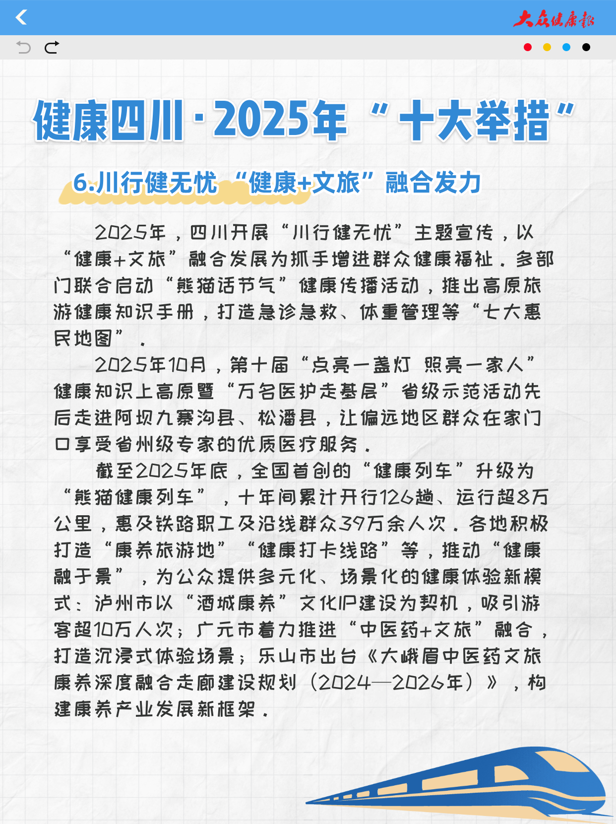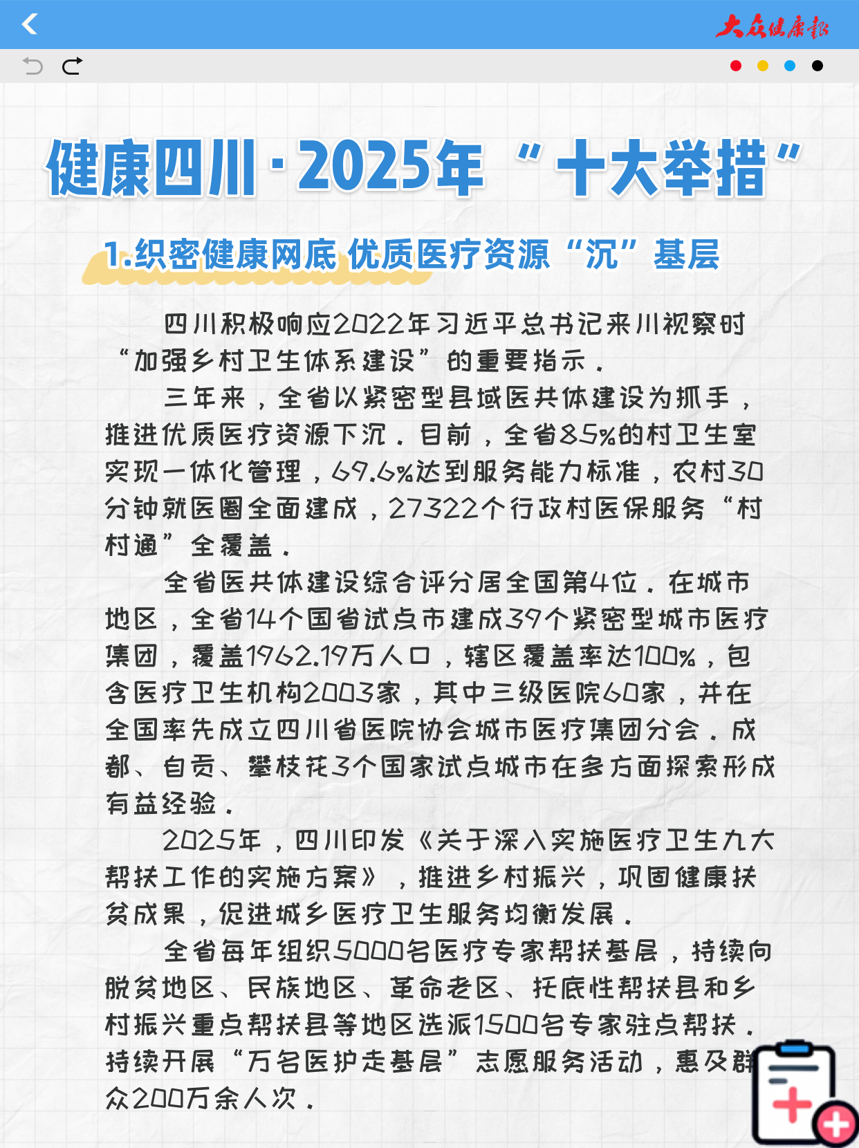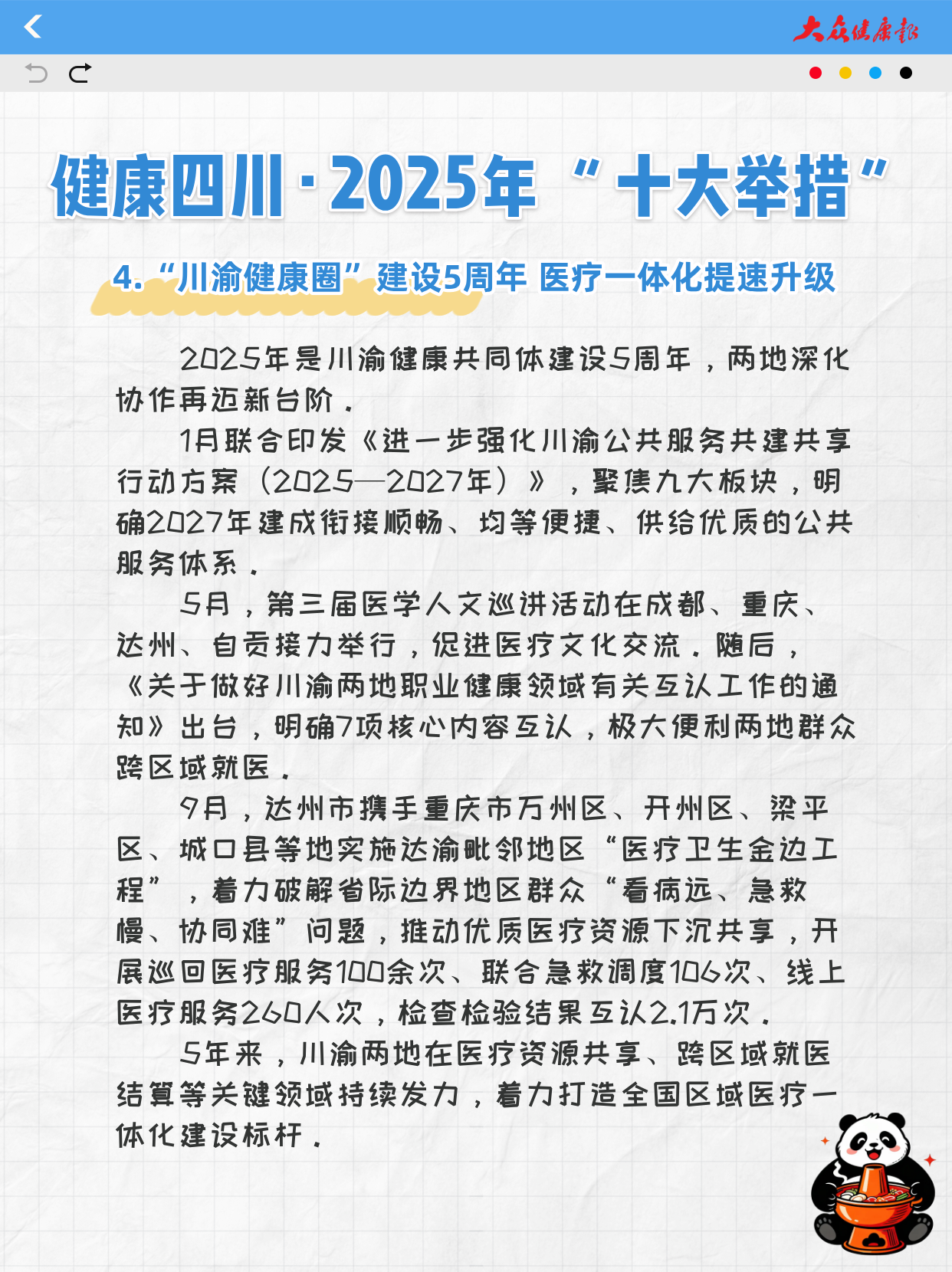 近日,川观新闻、大众健康报、川观智库健康研究院联合发布2025年度四川卫生健康行业十大举措。过去这一年,四川卫生健康事业有哪些亮点,一起来看看吧!