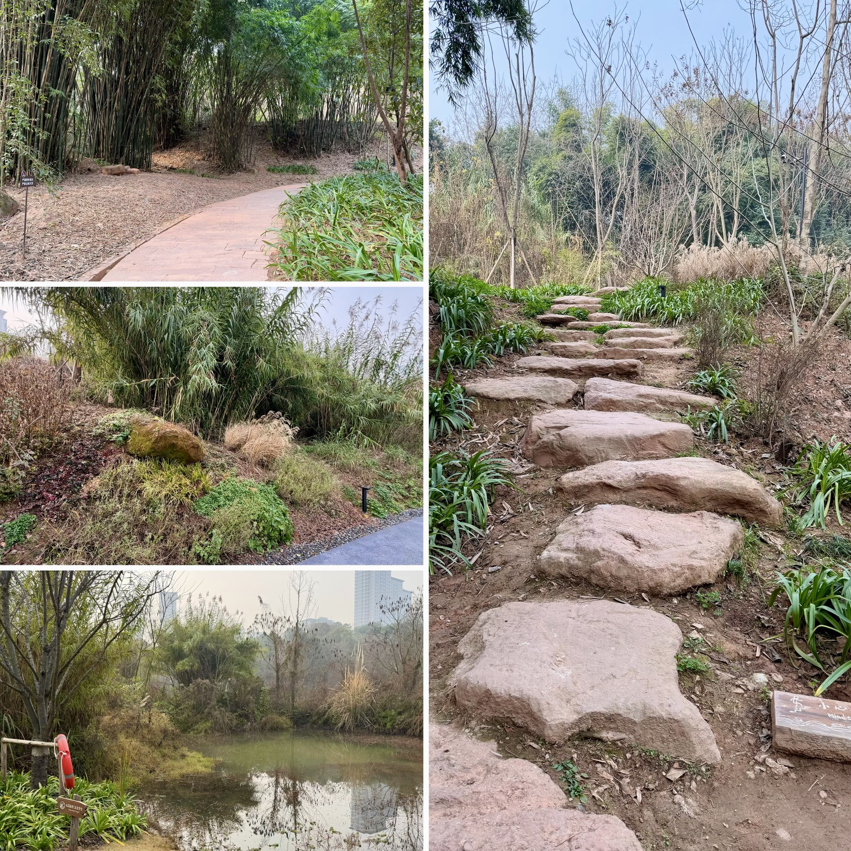 在麓野公园,原有的洼地、山坡、裸石、竹林等自然风貌,最大限度得到原位保留。石板路两边有徐孟打小常见的野草,山坡也是熟悉的杂林,高矮错落的乔木、灌木、草木混生,他屡屡恍惚,感觉自己走在农村老家的房前屋后。