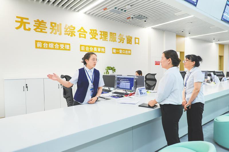 2025年5月14日,泸州市泸县纪委监委干部到县政务服务中心开展作风监督检查。 吴威 摄