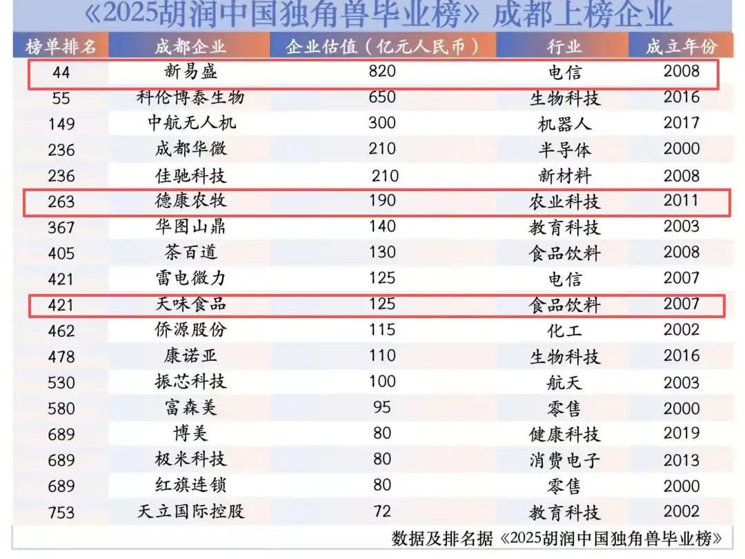 金融投资网讯(记者 黄凌屹)近日,胡润研究院首次发布《2025胡润中国独角兽毕业榜》,列出了中国成立于2000年之后、价值10亿美元以上的上市公司,按照企业价值进行排名。温江企业四川科伦博泰生物医药股份有限公司(简称“科伦博泰”)上榜,以650亿元人民币估值排名第55位,在成都18家上榜企业中排名第二。
