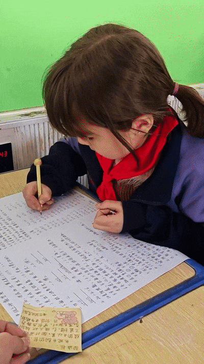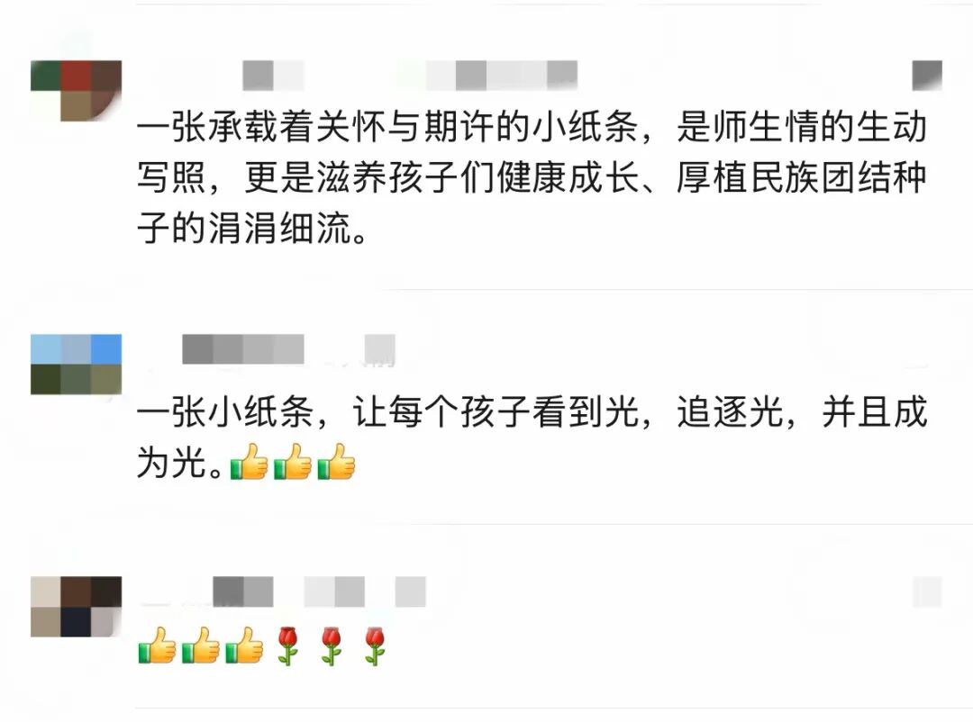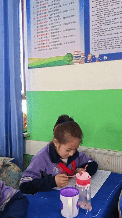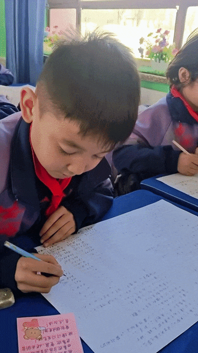 “我平时就常鼓励孩子们,这次临近期末考试,想换一种特别的方式为他们加油打气,就想到了之前在网上看到的手写便签形式。”木尼热说,她特意在下班后准备,第二天在课堂上用手机记录下发放便签的过程,只想定格孩子们最纯真可爱的模样。这次,她为班上45名学生准备了专属便签,精准捕捉着每个孩子独有的闪光点。