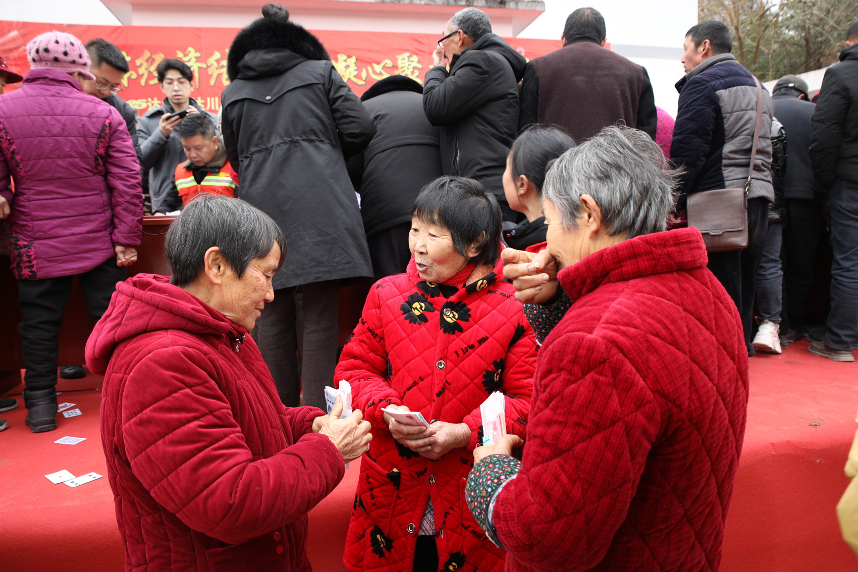 1月20日,节气“大寒”,气温低至5℃,大堰镇堰坝村党群服务中心院坝却是热闹非凡,中央搭起了文艺表演舞台,舞台海报墙写着“分红啦”三个鲜红的大字。院坝右侧是临时搭建厨房,炒菜的煤气灶“轰轰”作响。