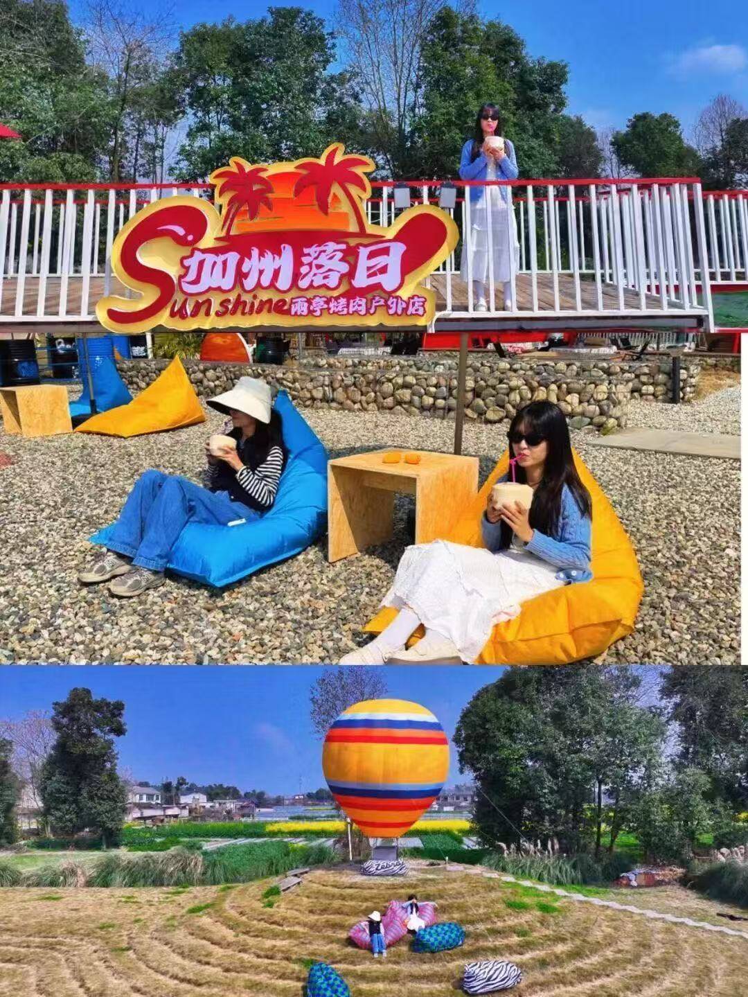 时尚女孩Jane,则十分喜欢到新津的网红店“加州落日”消费打卡。热气球、北美风油桶等异域造景,搭配蔬菜采摘、烧烤、追小鸭子、喂小羊等体验,将北美风情与川西坝子农耕文明巧妙融合,浪漫与野趣相得益彰。