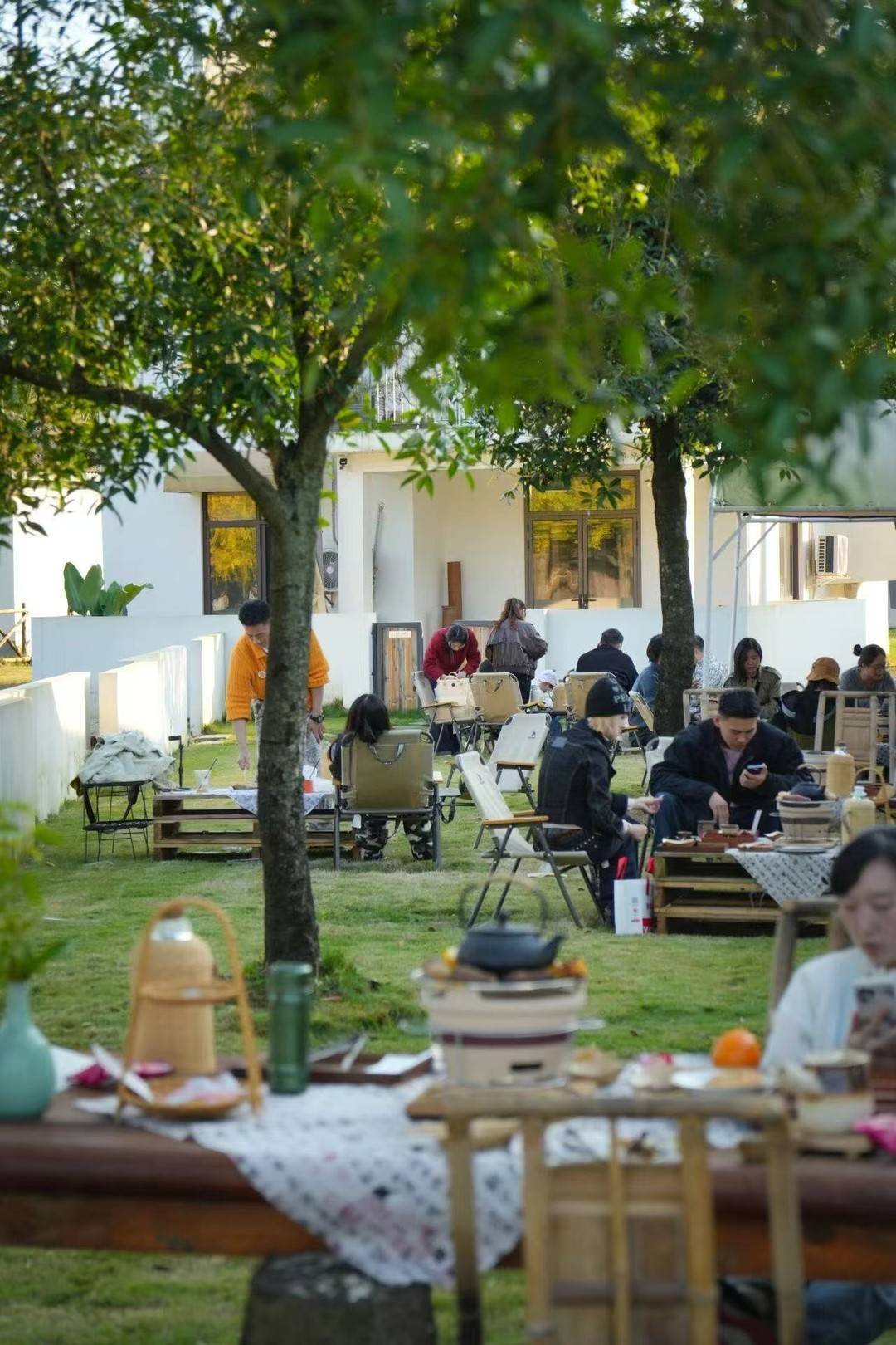 偏爱露营的自在?安西镇新漕村的“望南ORIGINAL”露营地绝对适合你。毗邻新津南河,隔绝了外界的纷扰,银杏树下的帐篷整齐排列。夜晚和家人朋友围坐在一起,品尝“望南ORIGINAL”的牦牛蹄牛肉汤锅、滋滋作响的烤肉,舌尖感受着烟火美味,抬头便是璀璨星空,这才是微度假的正确打开方式。