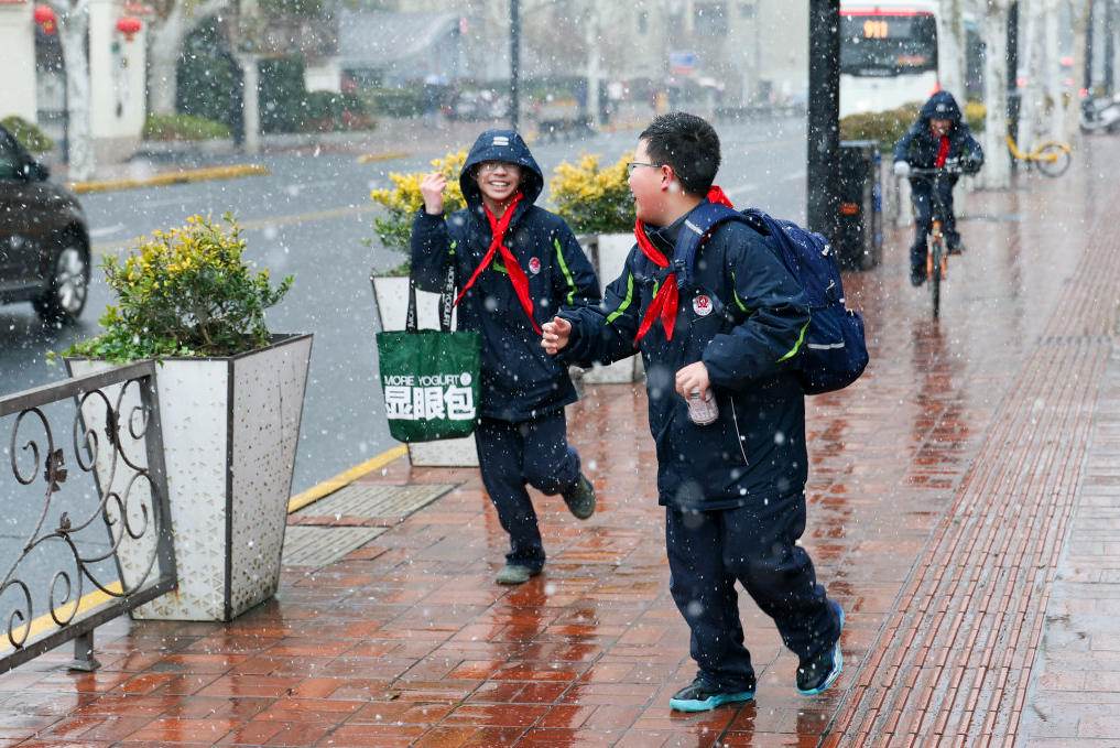 1月20日是大寒节气,我国多地迎来降雪,图为小朋友在上海市徐汇区迎雪玩耍。